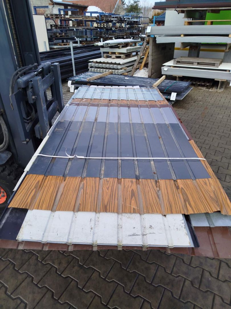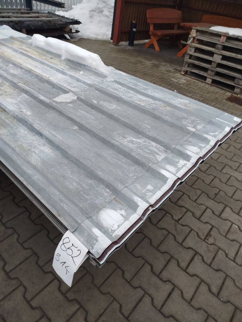 Ma drobne rysy lub przetarcia, ale idealnie nadaje się na dachy garaży, wiat, szop czy ogrodzeń.