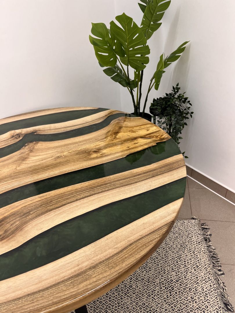- Nasze stoliki z żywicy epoksydowej są zabezpieczone certyfikowanymi powłokami, które są bezpieczne dla domowników i odporne na plamy.
