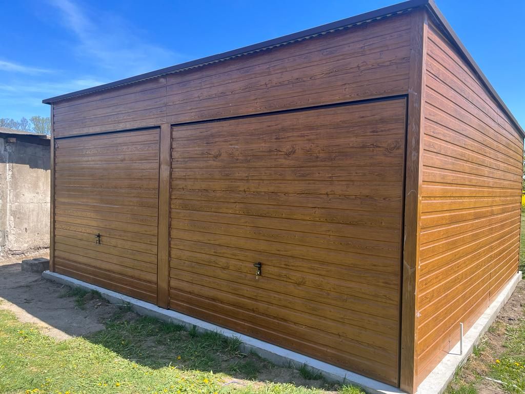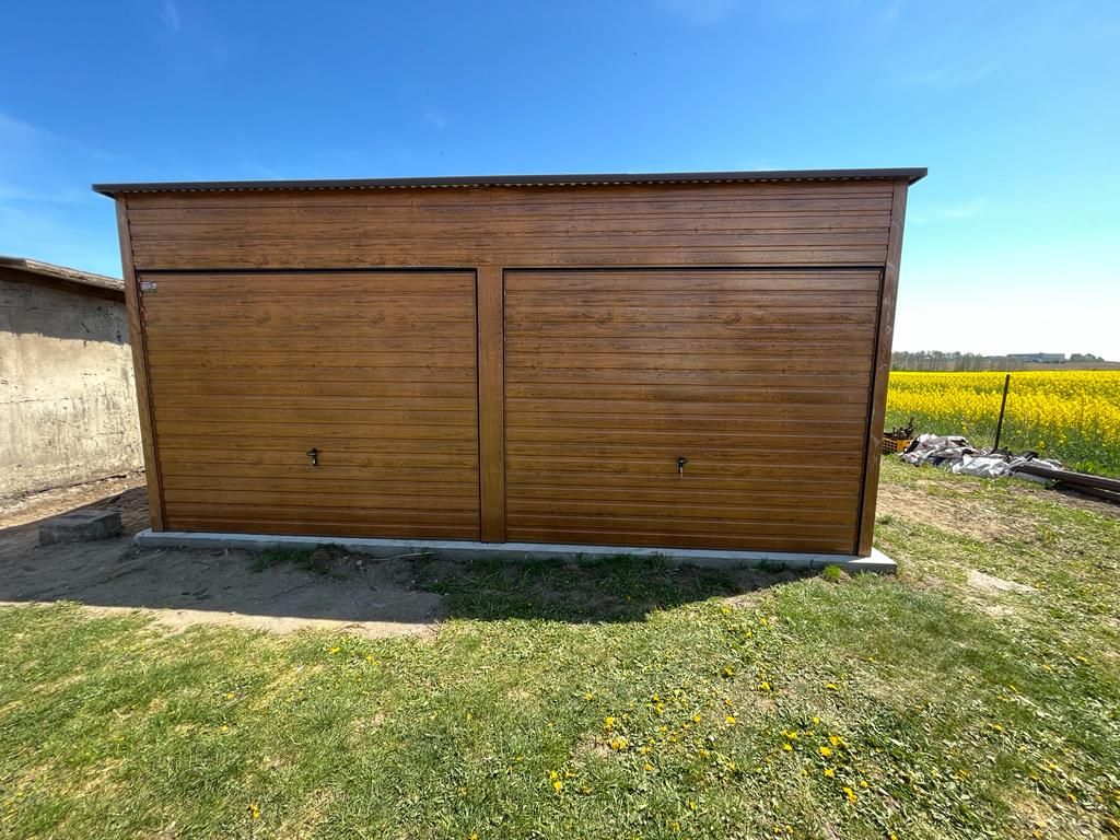 Garaż Blaszany / Blaszak / JEDNOSPADOWY / ZŁOTY DĄB / możliwość Orzech/ Garaże Blaszane / Wiata / Hala / Magazyn / Schowek / Schowek Budowlany / Magazyn domowy / Wiaty / Hale / Konstrukcja Stalowa / Garaże Drewnopodobne - JEDNOSPADOWY o wymiarach 6x5m