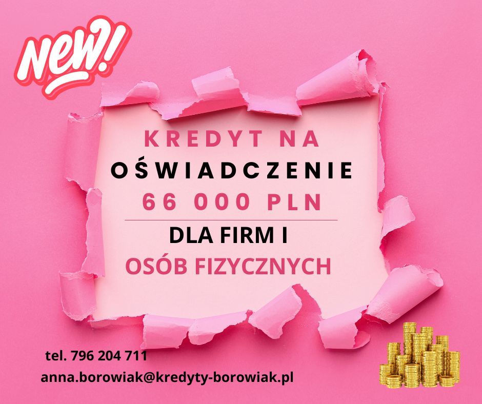 KREDYT DLA FIRM I OSÓB FIZYCZNYCH NA OŚWIADCZENIE – DO 66 000 ZŁ!