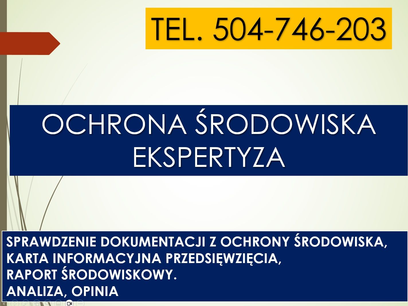 Sprawdzenie raportu o oddziaływaniu na środowisko, tel. 504-746-203, opinia