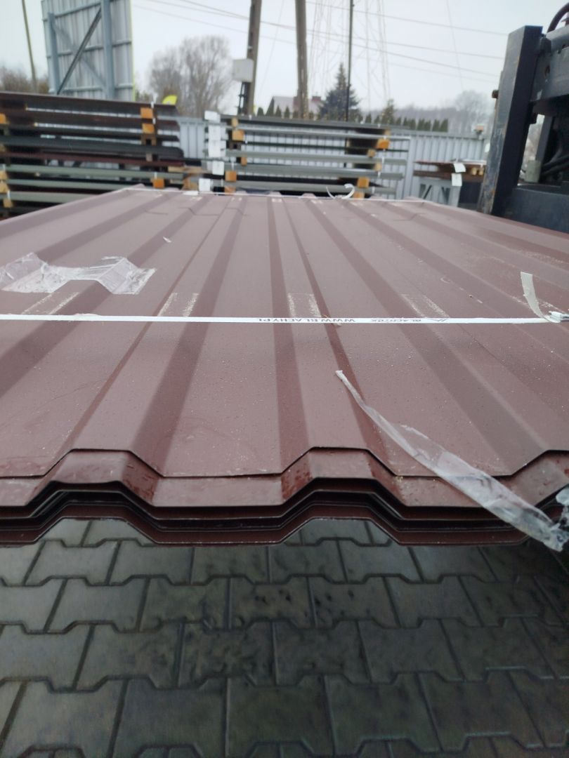 Na sprzedaż blacha trapezowa II gatunku (towar z wadami powłoki) — paczki po ok. 50 arkuszy, łączna powierzchnia pakietu ok. 114 m². Profil TBD-18 o szer...